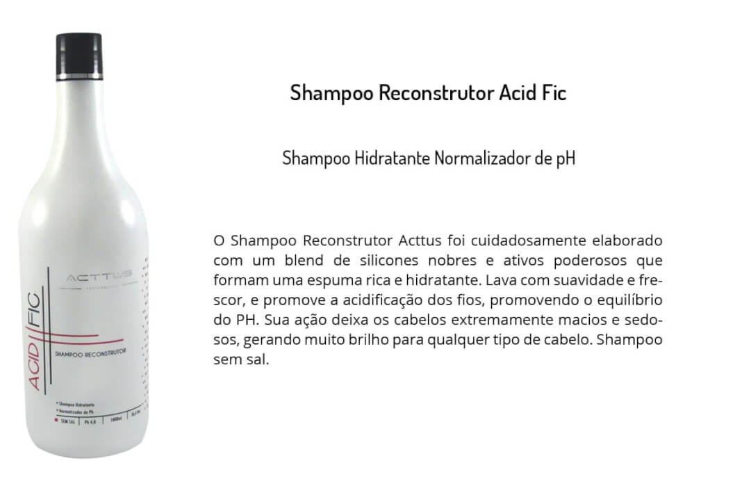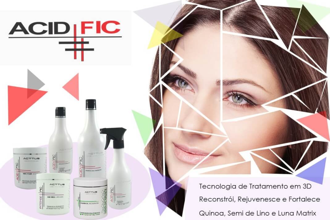 O Acidfic é muito mais que uma cauterização, é uma tecnologia de tratamento em 3D que reconstrói, rejuvenesce e fortalece fantasticamente a fibra capilar. Fórmulas exclusivas desenvolvidas com ativos inovadores como Quinoa, Argan, Semi di Lino, Luna Matrix e outros, distribuídos em três máscaras de tratamentos direcionadas para cada tipo de problema capilar e um complexo nutriente queratinado, o Keratin Complex.